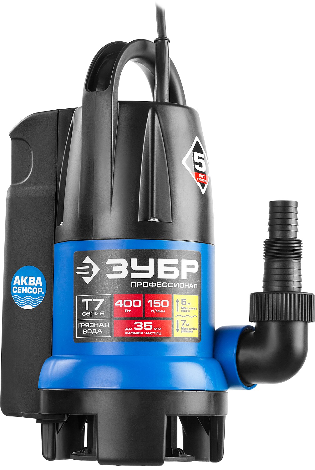 Дренажный насос НПГ-Т7-400 ЗУБР (P1=400 Вт, Макс.напор=5 м, Макс.расход=150 л/ми)